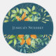 Elegant Watercolor Greenery Foliage Botanical Blue Classic Round Sticker