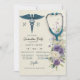 Celebrate your hard-earned nursing degree with this stunning, realistic medical-themed invitation! 💜 This design features a beautiful watercolor floral arrangement in soft purples and creams, paired with a high-quality, realistic 3D stethoscope and medical caduceus symbol—perfectly balancing professionalism with elegance.