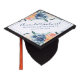 Lovely peach and blue watercolor florals with greenery graduation cap topper. Elegant with script name in blue type.