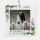 Elegant Watercolor Pine Cone Greenery and Holly Berries Our First Christmas Wedding Photo Ornament