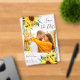 This beautiful sunflower wedding clear acrylic photo save the date invitation. Design features hand-painted yellow watercolor sunflowers and greenery. THE SAMPLE PHOTO IS NOT INCLUDED. REPLACE WITH YOUR OWN PHOTO BEFORE ORDERING.