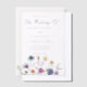 Pretty wildflowers decorate the bottom of this colorful spring wedding vellum invitation. Watercolor floral borders are perfect for a garden ceremony outdoors while flowers are in bloom. Elegant script dances above a beautiful orange, purple, yellow, and blue botanical meadow.