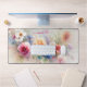 Custom Name Monogram Text Watercolor Aquarell Flowers Modern Elegant Template Desk Mat.