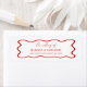 These are Red White Elegant Wavy Border Wedding Return Address Labels!