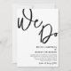 This is a modern and elegant 'We Do'calligraphy wedding invitation in black on a white background. Easy to customize the text to create something really unique.
