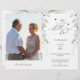 Welcome your guest to your vow renewal ceremony with this exquisite ceremony program, featuring gorgeous watercolor greenery and floral details with attractive phrase "we still do" in graceful modern hand written calligraphy. Ability to personalize text in all sides. Option to keep or delete little hearts on the front next to "we still do", to erase click on blue button at the end of template, then click on heart on screen and "backspace" on your keyboard. Greenery and white floral with details in blue hues. Back with section for your photograph. Keep in mind our text is simply an example, you can change it to suit your needs and even adjust /change text font size, style and position by clicking on blue button to customize. NOTE: this programs arrive flat and require folding down the middle to assemble. The default value paper is recommended. For a clean fold we suggest to score program with inexpensive bone folder before folding. The size refers to the program "before" it's folded, as it looks in the "front" preview image. Part of our "Elegant Bliss" collection with a variety of coordinating products available.