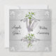 Elegant Wedding Anniversary Invites. Silver Floral Damask Lilies, Champagne glasses