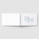 An elegant wedding guest book featuring a flowing monogram, with soft pastel aqua initials gently ghosted behind curved script typography and classic serif type for a graceful interplay of letterforms. A delicate botanical leaf element and fine center line add a pretty finishing touch that elevates your wedding monogram. Personalize with your names, date, and location on a clean white cover, then enjoy lined pages inside for signatures, personal messages, and well wishes to keep long after the day.