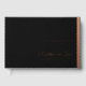 This Classic Wedding Guest Book features a formal black covering with a bronze foil edging with custom Bride and Groom names in script. Add your wedding date and married name in a classic serif font. Perfect for all wedding related events: Bridal Showers, Wedding Rehearsal, Wedding Receptions and more.