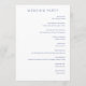 This is a minimalist style image featuring an elegant wedding ceremony program for Isabella & Patrick. The design showcases delicate blue hydrangea flowers at the bottom, adding a touch of softness and natural beauty to the layout. The text is neatly organized in a clean font, listing the ceremonial steps from procession to recessional. The overall mood is serene and sophisticated, perfect for setting a graceful tone on their special day.