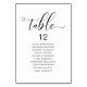 Wedding Dinner Guest Seating Table Chart Card, Modern Elegant Script.