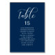Wedding Dinner Guest Seating Table Chart Card, Modern Elegant Navy Blue Script.