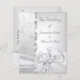 Elegant Wedding Floral Silver White Bow Hearts Invitation