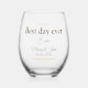 Chic wedding stemless glass for the bride and groom to celebrate with at their engagement party, rehearsal dinner, wedding reception, wedding anniversary, etc., featuring "Best day ever" in simple modern typography and an elegant script with swashes, your first names joined together by a heart and your wedding date.