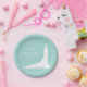 Pretty white wedding gown on a lovely turquoise background. Personalize with your text, monogram or initials. Perfect for Bridal Shower or Weddings, just change the text. Select 7" or 9" plates.