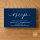 Introducing our Modern elegant minimalist Wedding "rsvp" Card – the perfect blend of sophistication and simplicity in navy blue theme. Designed for the contemporary couple, this RSVP card features clean, minimalist script, and a subtle touch of luxury to remind and notify guests to confirm their attendance via phone sms, text texting or email. The sleek design complements, adding a touch of class to your stationery suite. Ensure your special day is meticulously planned with our elegantly modern RSVP card – a timeless keepsake for you and your guests. Designed by TeeshaDerrick
