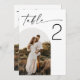 Create an elegant modern look for your reception with this minimalist wedding table number featuring your photo and a large easy to read number. Upload your couple photo and change the table number to match your seating plan. Clean black script “Table” paired with a modern numeral makes this design perfect for modern, classic, and romantic weddings. Ideal for wedding receptions, anniversaries, and other events. Display in a frame, tabletop stand, or acrylic holder for a polished, cohesive tablescape. Available as both a printed card and a digital download.