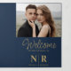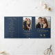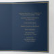 Crafted with exquisite attention to detail, this tri-fold program combines classic elegance with modern functionality. The luxurious navy blue backdrop adorned with shimmering gold accents sets the stage for a celebration of unparalleled beauty and style.
