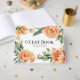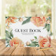 A Beautiful elegant simple wedding guest book, with peach floral greenery, a botanical boho style, simple typography, with the bride and groom's names, your wedding date, beautiful garden flowers, with a spring summer winter fall, minimalist lettering, with a creative unique