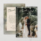 Elegant Wedding Photo Thank You Card designed with your favourite Wedding picture on the front with the text: Thank You! This two-sided keepsake card includes your Wedding Thank You Message and Names on the Reverse side, decorated with a border of Antique Roses in Soft Pink and Green. To personalize, simply insert your image into our easy template, replacing the sample. Click: FILL to cover the front. Next, insert your message and names into the template.