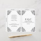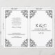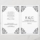 Nadine Wedding Program Foldover (Black): Let your guests follow along with your wedding order of service with this unique vintage corners wedding program template in gold. These will come unfolded (with no crease). The design colour is set in a rich black, but you can change the colour of the design by changing your background colour. **HOW TO CHANGE YOUR DESIGN COLOR** 1) Click the "Personalize" Button. 2) Click the "ClICK TO CUSTOMIZE FURTHER" link at the bottom. Then you will have the option to change your "BACKGROUND COLOR" to your wedding colour. Don't forget to change your text colour to match your design.