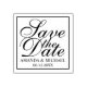 featuring phrase "Save the Date" in elegant calligraphy font style with name and date in classic serif font style with square border.