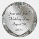 Easily change to your own text on these elegant silver metal stickers with a 3d look heart on silver sequin's glittering background. Shown is "Jane and John's Wedding Day" with the date in elegant script. Change to your custom names and date easily. Also nice for parties, special occasions and big events like a silver 25th anniversary.