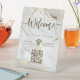 Elegant Welcome Script WIFI QR Code Agate Marble Pedestal Sign