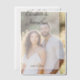 Names of the bride and groom are in an elegant, black script near the top. This black and white wedding invitation vellum overlay can be personalized with the wedding date along with the names of the bride and groom.