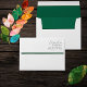 Elegant invitation envelope done in white, with a thin emerald green border, on the back flap. The inside of this envelope is done in solid emerald green. Personalize the return address to suit your needs.