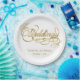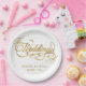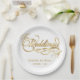 Elegant White and Faux Gold Calligraphy Wedding Paper Plate