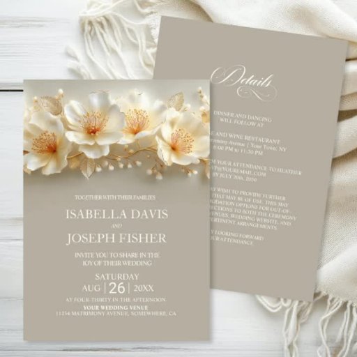 Elegant White and Gold Floral Wedding Invitation