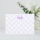 Pink and white squares pattern. Custom note cards with monogram. Lavender version. Edit initial and name to customize.