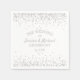 Elegant white with silver glitter wedding reception paper napkins, personalized with the couple's names and wedding date.