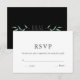 Elegant Minimalist White Gold Modern RSVP. Pure elegance with charcoal text on white and back featuring print of artist's handpainted watercolour leaves with customizable charcoal text monogram initials centre black. Personalise with your own text front and back.