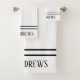 Personalised Elegant White Black Monogrammed Name Bath Towel Set