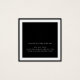 This modern, minimalist, and simple necklace display card features an elegant black and white design. It depicts a thick white border and matching trendy cursive signature typography on top of a plain black background. On the back, it includes your business contact information. It's a professional, elegant, and stylish way to display your product with pride. (Any holes or markings must be cut by the customer. They are only a guide.)