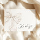"She's tying the knot" theme bridal shower thank you card with an elegant white bow design.