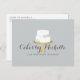 Coordinates with the Elegant White Cake with Florals Cake Decorating Business Card Template by 1201AM. An elegant tiered white cake decorated with white flowers sits atop a faux gold cake stand for a beautiful aesthetic on this bakery or cake decorator's postcard template. Update the calligraphic text with your name or business name for an instant logo. Great to use for announcements, personal greetings, promotional offers and more. © 1201AM CREATIVE