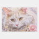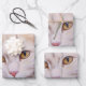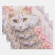Wrapping paper with a lovely illustration. A long haired white cat looking regal and elegant. Surrounded by pink flowers, gold and diamond jewellery.