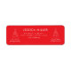 Set against a vibrant, festive red background, this label features clean, modern text for the name and address. Flanking the text are graceful, stylized white line-art illustrations of Christmas trees, complemented by a charming "Merry Christmas and happy New Year!" script.