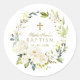 Elegant White Cream Flowers Gold Cross Baptism Classic Round Sticker