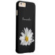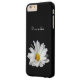 A Barely There iPhone 6 Plus Case with a photograph of an elegant white daisy with a yellow centre against a pure black background. Add your name name to this pretty flowers design.