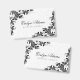 Elegant black floral lace swirls over white floral damask pattern