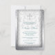 Elegant silver grey and white damask swirls with pearly white cross first holy communion invitation. This pretty white damask first communion invitation is easily customized for your event by adding your event details, font style, font size & colour, and wording.