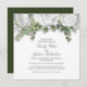 Elegant modern botanical/garden-style white hand-drawn floral (roses) and painted green leaves and foliage on square white wedding invitation. The back of this invitation is a deep Hunter green. Perfect for a wedding any time of the year. Text, font, font size and colour are completely customizable, so this card can be customized to perfectly suit your needs.