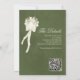 This beautiful wedding invitation features a lovely hand painted watercolor bouquet of roses, blossoms, eucalyptus leaves, and greenery in shades of ivory, white, and cream. The design features a fancy calligraphy script with a long curly tail making it both modern and classic. Elegant, sophisticated and chic way to invite your friends and family to share in your special day. The back of the card is a deep sage or olive green colour with a QR code and space to direct your guests to your website for more information and to RSVP.