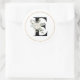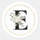 Elegant White Floral Monogram Letter E on White Classic Round Sticker