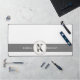 Simple and elegant monogram desk pad along with name. White floral around a black letter for the monogram.