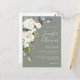 With a popular neutral colour scheme, this wedding invitation design is conveniently provided on a post card for economical mailing. The features a cascading bouquet of white watercolor florals with trailing greenery on a popular sage green. The flowers include roses, hydrangeas and matching mixed florals for a lovely effect. The text pairings used in this design feature the bride and groom's names prominently using a handwritten type face. Personalize the easy-to-use text template with your wedding details. Tip: If you don't want your invitation to look like a postcard, click Customize and go to the back layer of the postcard and remove the divider line and stamp graphic.